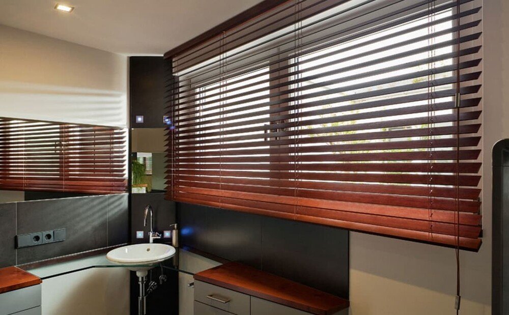 Деревянные жалюзи на окна — солнцезащитная система из плоских деревянных или бамбуковых пластин (ламелей), которая позволяет регулировать освещенность помещения, создают уютную, теплую атмосферу и являются декоративным элементом, подходящим для интерьеров в разных стилях.