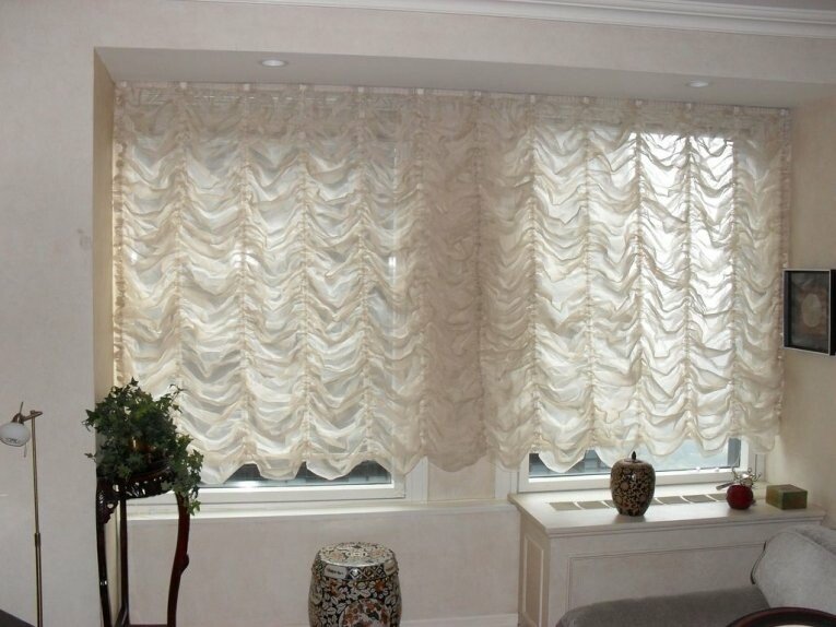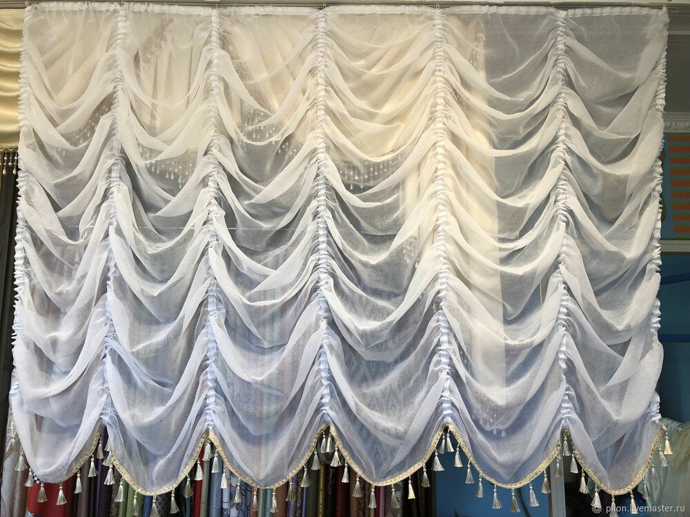 Французская штора лён кашемир коричневый, карниз верёвочный