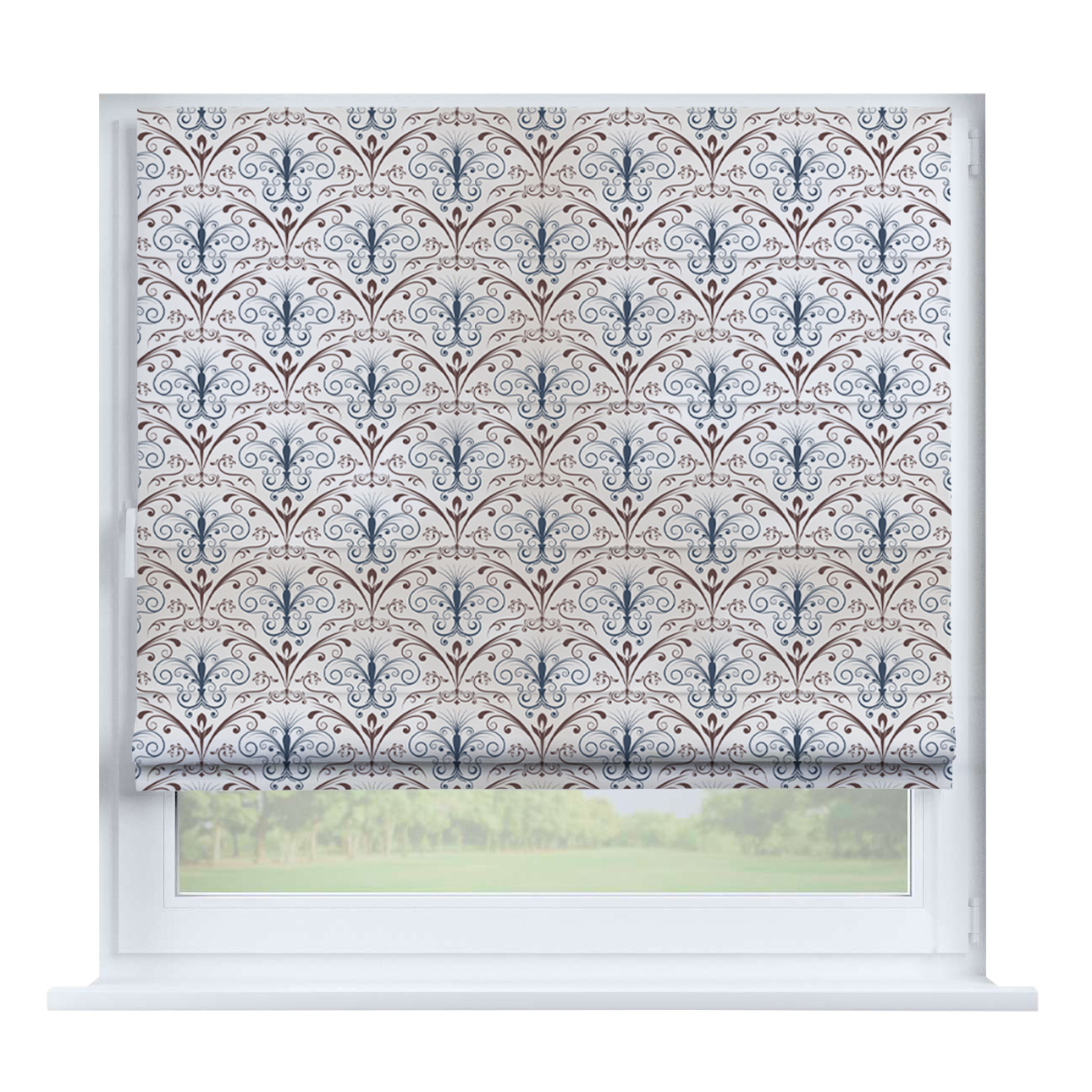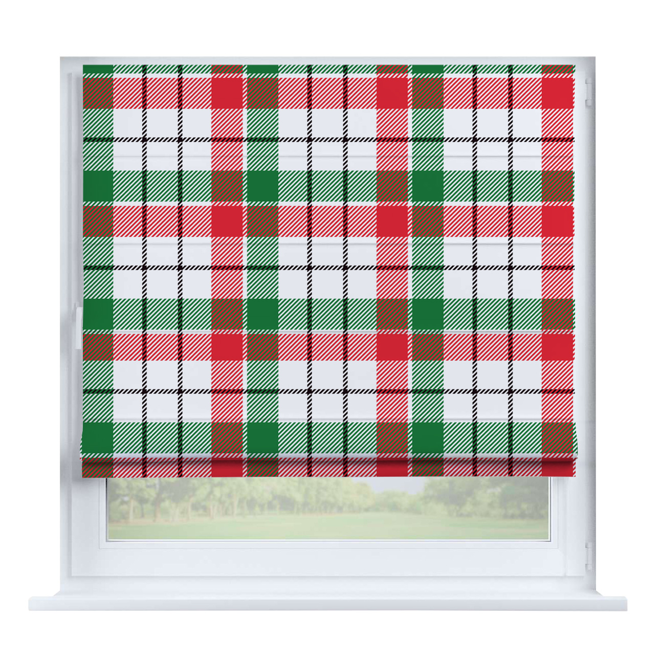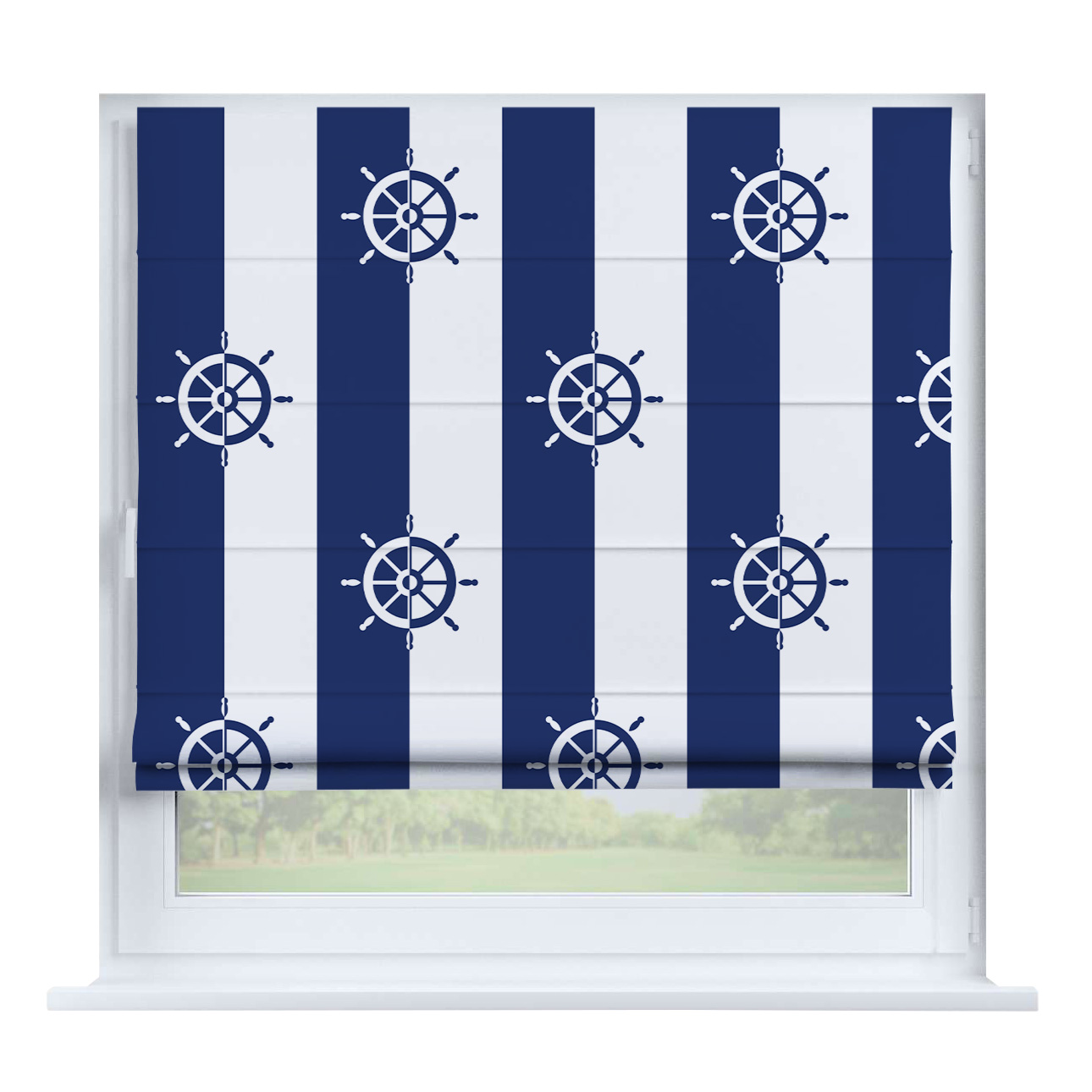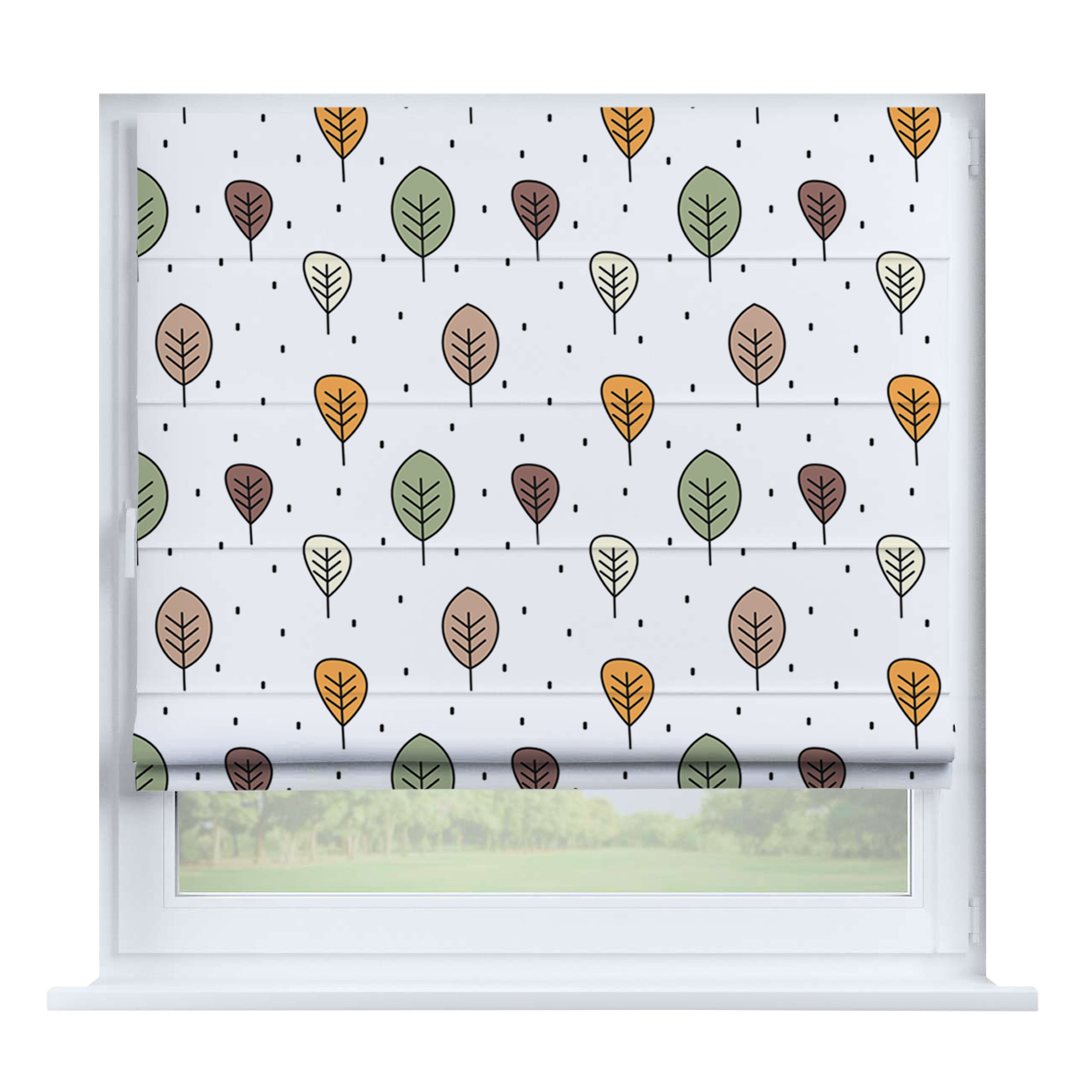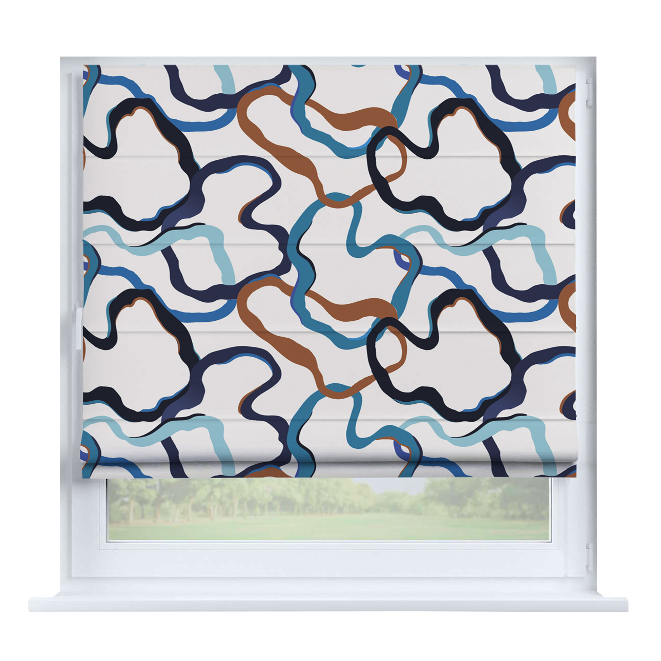 Римская штора для проёма «Лесистая местность», карниз верёвочный