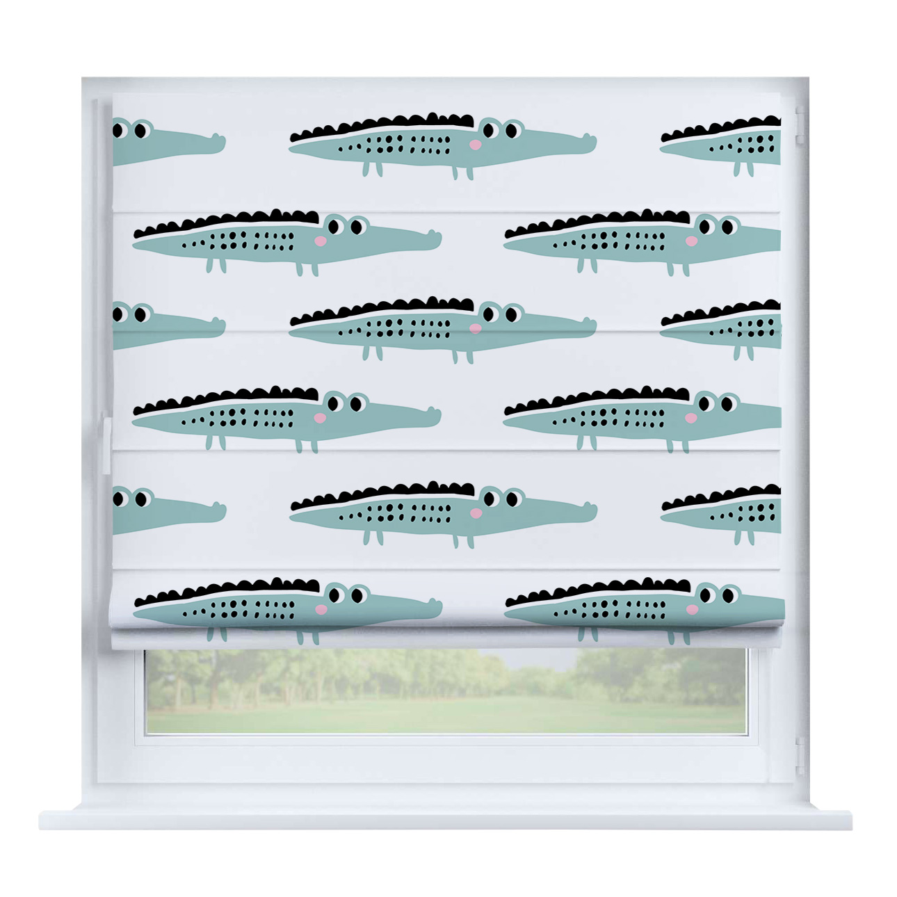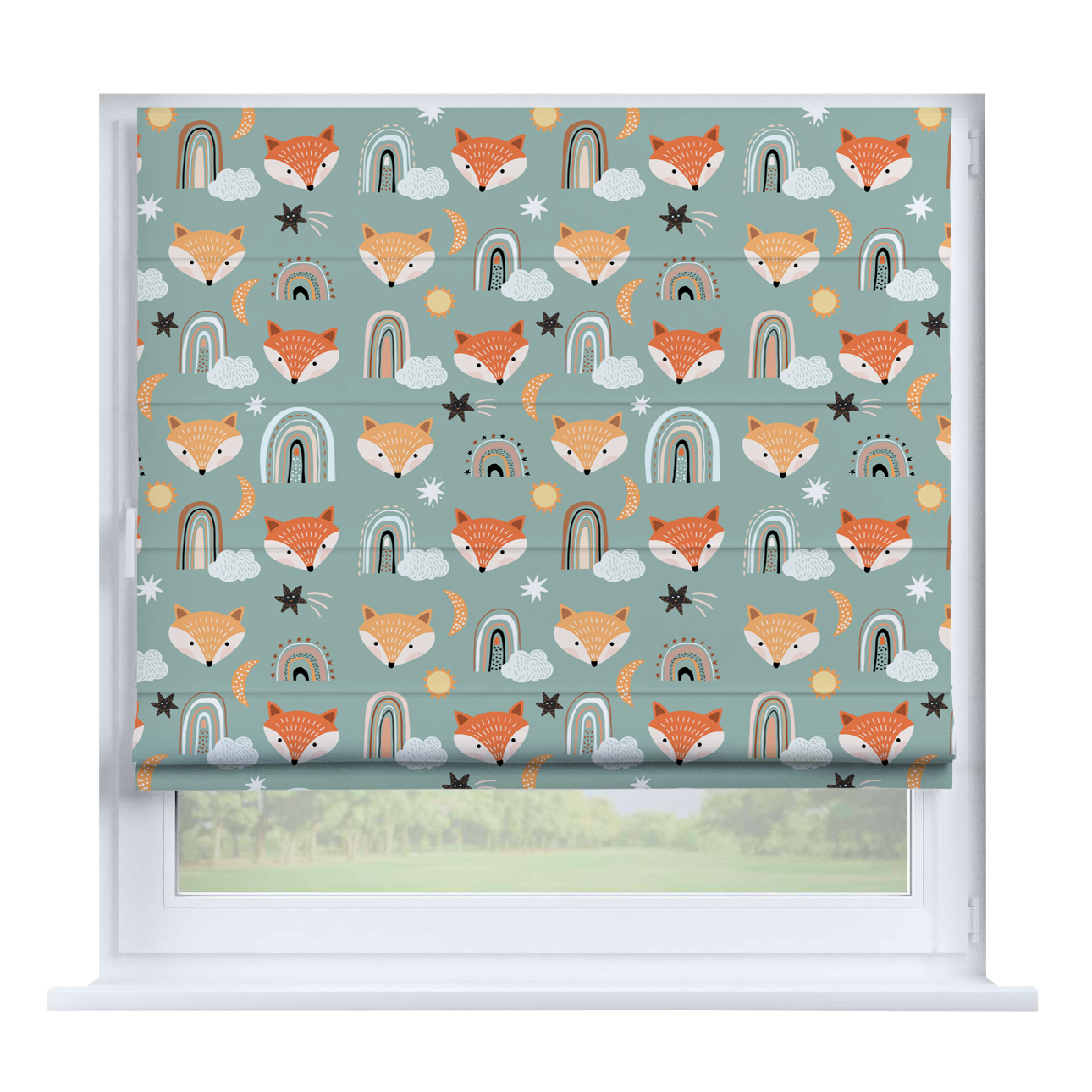 Римская штора для проёма «Скандинавский питомник», карниз верёвочный