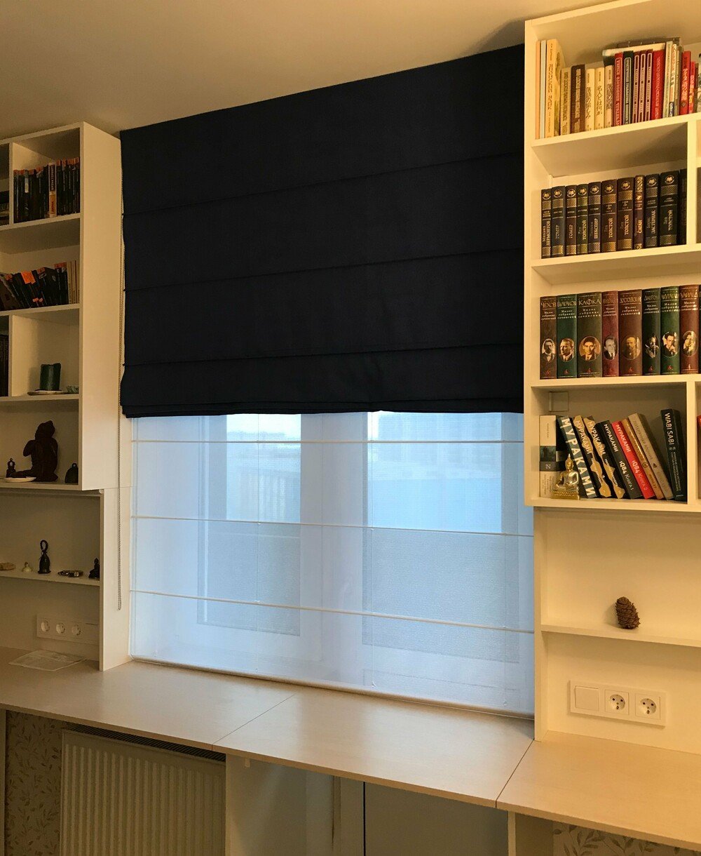Мы предлагаем римские шторы на аккумуляторе (удобно, если к окну не подведен кабель) и модели, которые могут работать как от сети 220В.