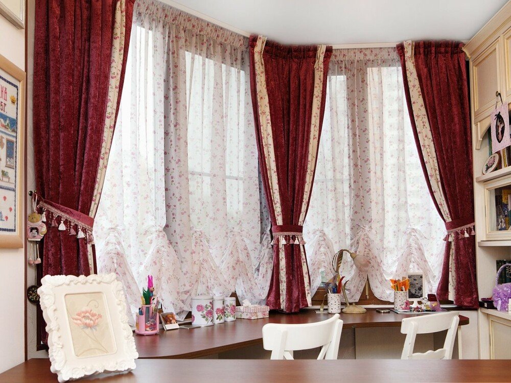 - Зонирование пространства. С помощью штор можно условно разделить большое помещение на функциональные зоны, например, отделить рабочую и зону отдыха.